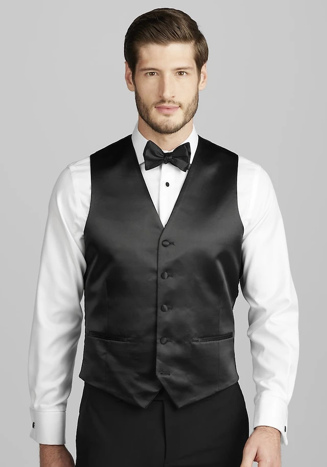 Men's Jos. A. Bank Tailored Fit Wool Blend Satin Front Tuxedo Suit Vest at Jos. A. Bank, Black