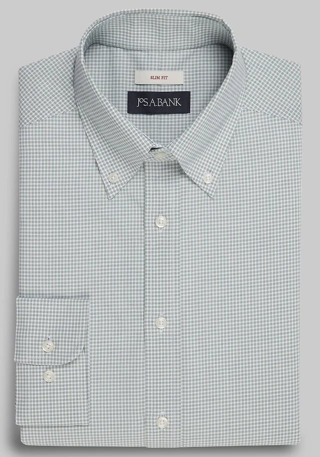 Men's Jos. A. Bank Slim Fit Button-Down Collar Check Dress Shirt at Jos. A. Bank, Green