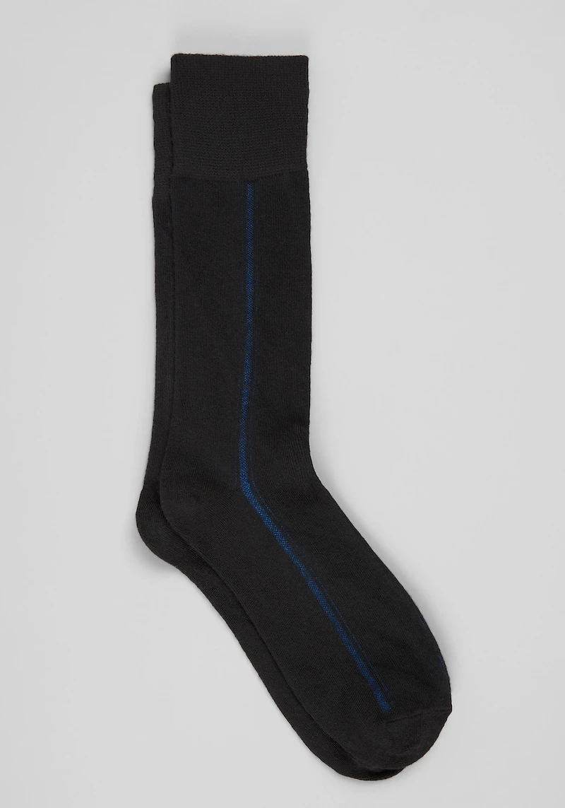 Add a subtle touch of detail to your look with these solid socks featuring a classic striped clocking pattern along the sides. Crafted from a soft, durable blend, they provide a perfect fit with just the right amount of stretch for all-day wear. Perfect for pairing with dress shoes or casual footwear, these socks combine timeless style and dependable comfort. Jos. A. Bank Striped Clocking Socks