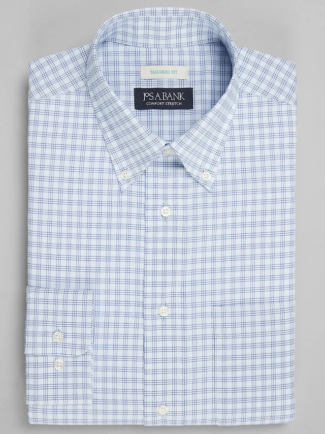 Men's Jos. A. Bank Tailored Fit Button-Down Collar Check Dress Shirt at Jos. A. Bank, Blue
