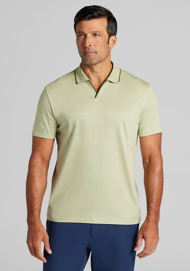Jos. A. Bank Tailored Fit Engineered Texture Tipped Johnny Polo Shirt