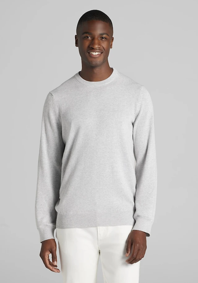 Men's Jos. A. Bank Tailored Fit Heathered Pima Cotton Crew Neck Sweater at Jos. A. Bank, Light Grey