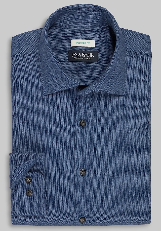 Men's Jos. A. Bank Tailored Fit Herringbone Flannel Casual Shirt at Jos. A. Bank, Blue/Navy