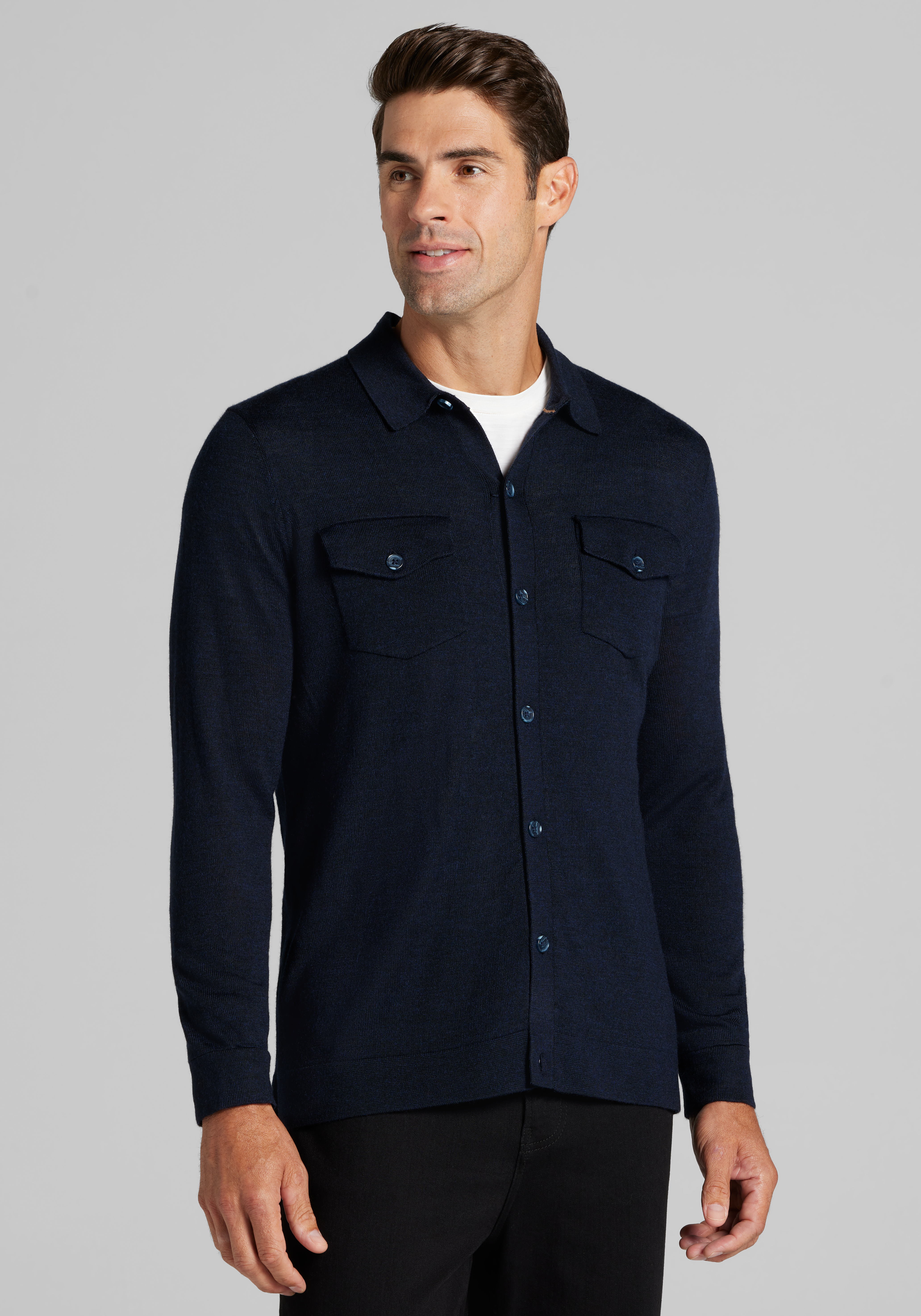 Men's Jos. A. Bank Tailored Fit Merino Wool Blend Shirt Jacket at Jos. A. Bank, Blue/Navy