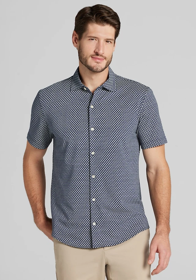 Men's Jos. A. Bank Tailored Fit Small Diamond Short Sleeve Casual Shirt at Jos. A. Bank, Blue/Navy Blazer