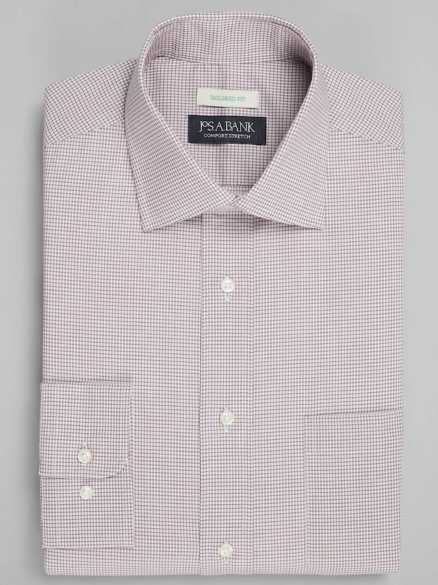 Men's Jos. A. Bank Tailored Fit Spread Collar Micro Grid Dress Shirt at Jos. A. Bank, Burgundy