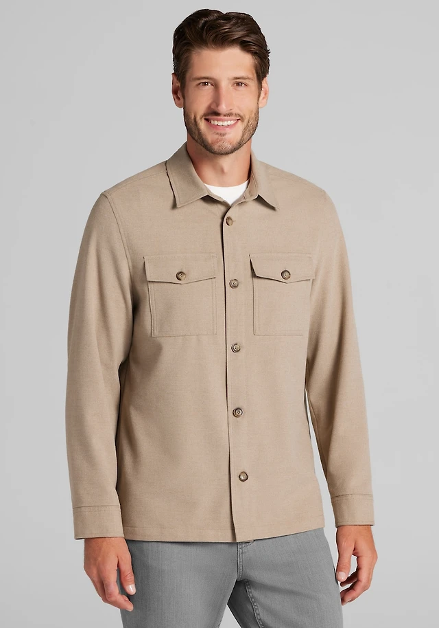 Men's Jos. A. Bank Tailored Fit Tech Flannel Shirt Jacket at Jos. A. Bank, Camel/Tan