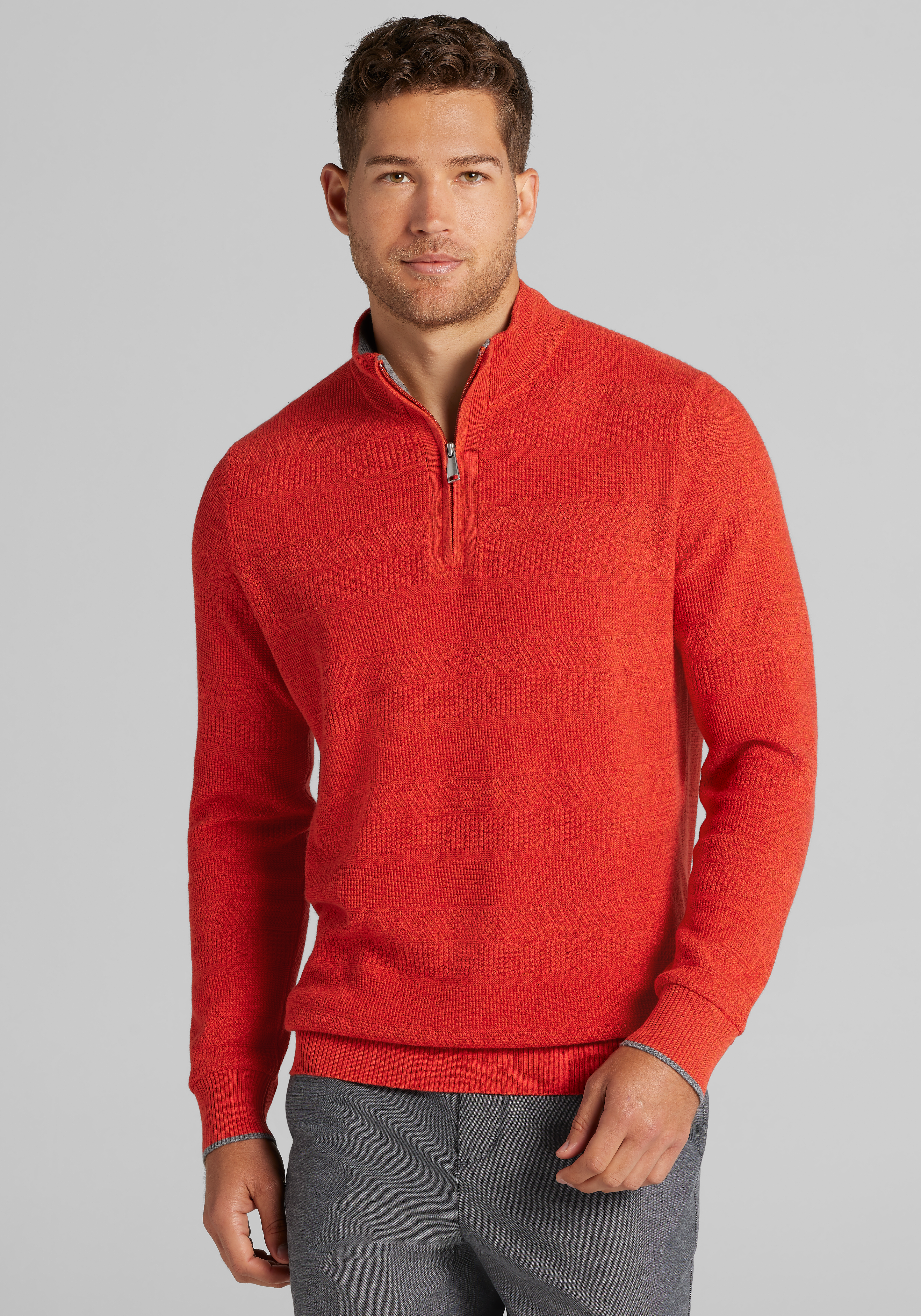 Jos. A. Bank Tailored Fit Textured Stripe 1/4 Zip Sweater CLEARANCE