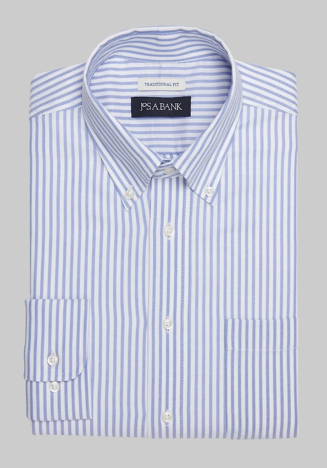 Men's Jos. A. Bank Traditional Fit Button-Down Collar Bengal Stripe Dress Shirt at Jos. A. Bank, Blue