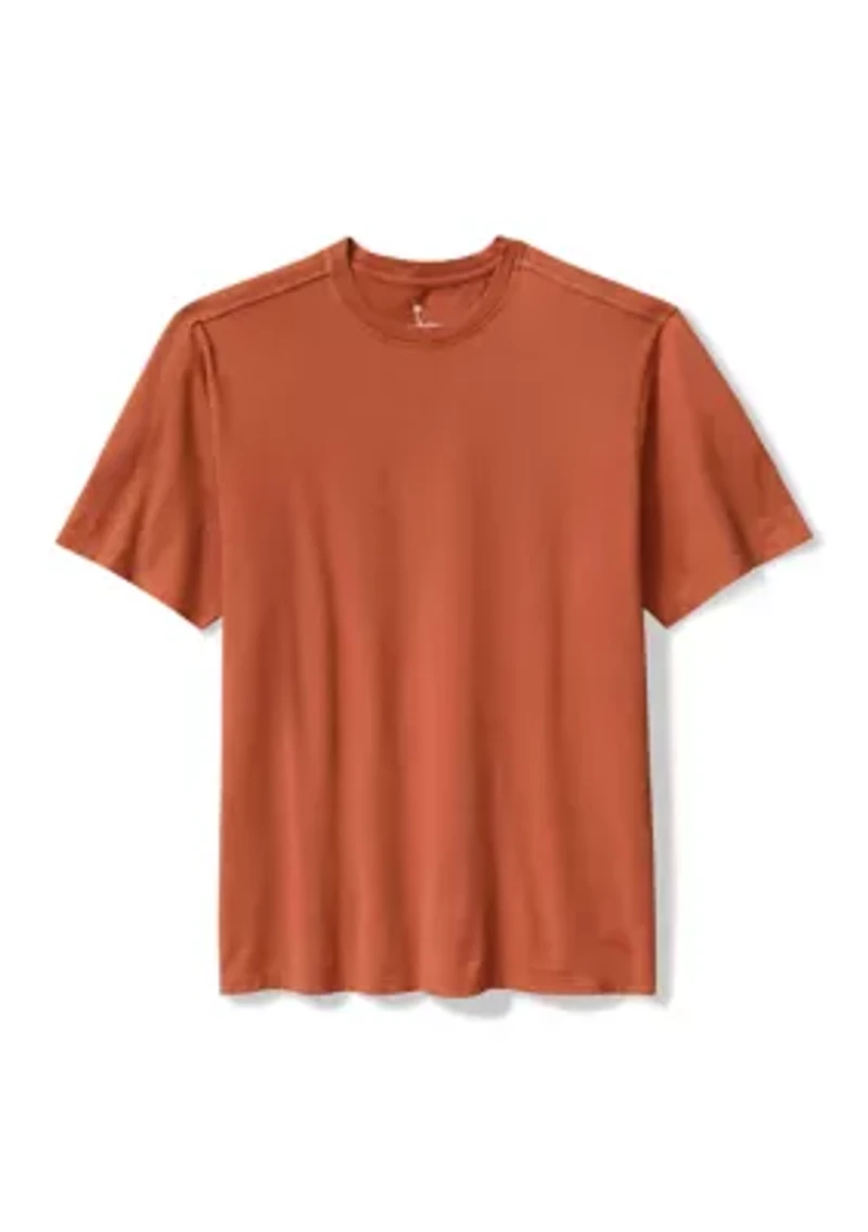 It's like a basic... but better. Woven with an integrated twist in the jersey, this Tommy Bahama® t-shirt's modern construction helps it maintain its subtle washed texture, while elevated design details and a thoughtful range of colors make it a casual, everyday staple. Embroidered Marlin logo at the hem Crew neck Short sleeves Imported Material & Care 100% cotton Machine washable