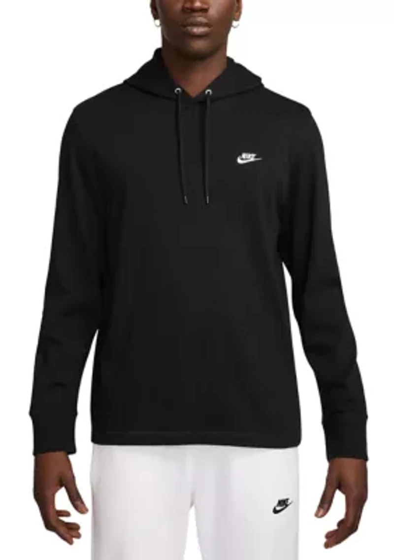Made for everyday wear, this Nike® pullover hoodie pairs Nike Club comfort with classic style. It's made from soft knit fabric, with a standard fit that's relaxed through the body for easy layering. The double-layer hood construction adds softness and structure. Round braided drawcords at the hood let one adjust the fit Embroidered Nike Futura logo Body: 100% cotton Hood lining: 100% cotton Machine wash Imported Pullover Imported