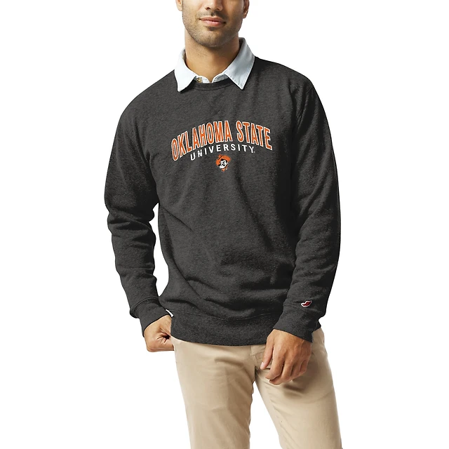 Men's League Collegiate Wear Heather Charcoal Oklahoma State Cowboys Heritage Tri-Blend Pullover Sweatshirt