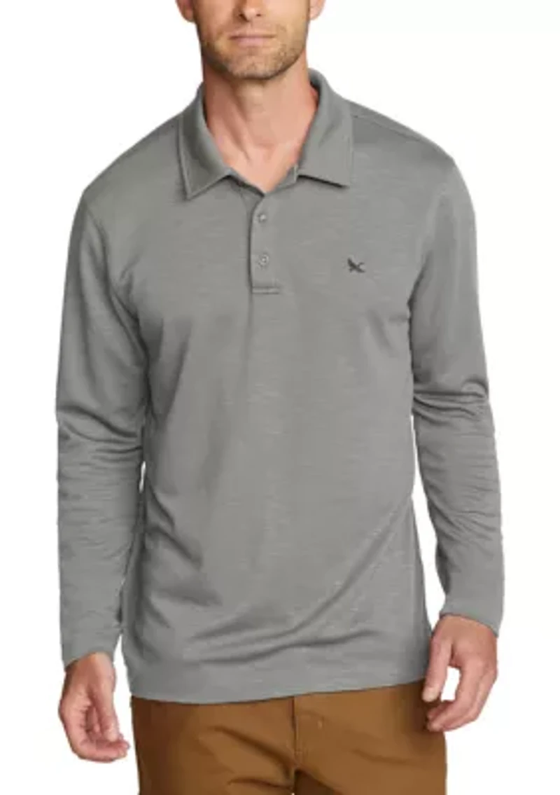 Achieve easy sophistication by adding this mélange polo shirt from Eddie Bauer to your rotation. Button closure Collar Long sleeves Imported Material & Care Cotton, polyester, spandex Machine washable