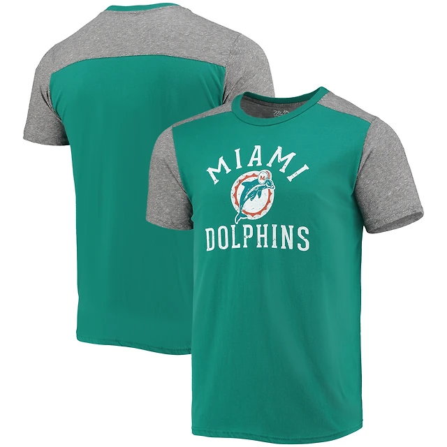 Men's Majestic Threads Aqua/Heathered Gray Miami Dolphins Gridiron Classics Field Goal Slub T-Shirt