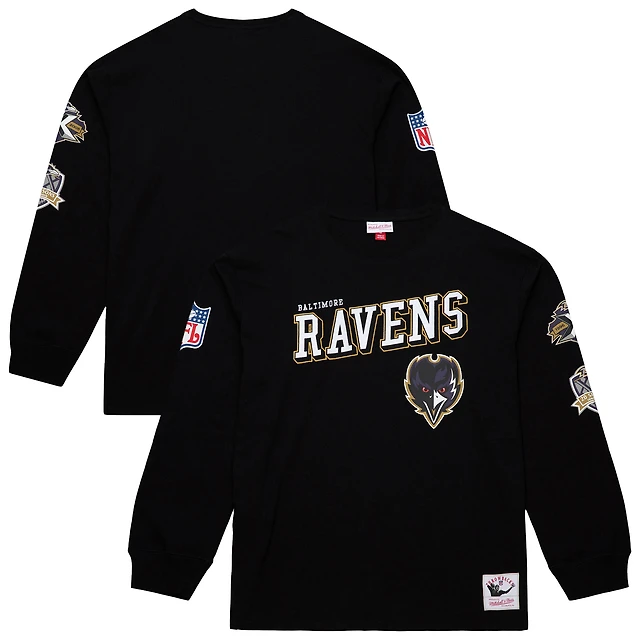 Men's Mitchell & Ness Black Baltimore Ravens Training Camp Vintage Logos Long Sleeve T-Shirt