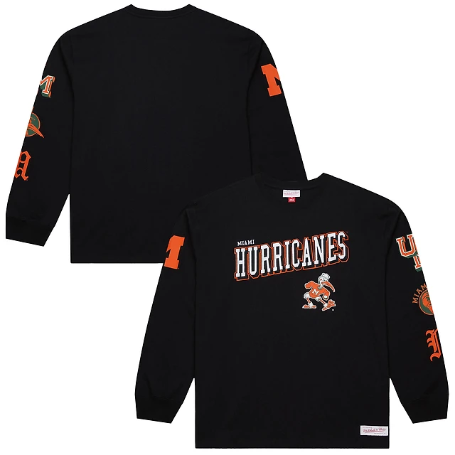 Men's Mitchell & Ness Black Miami Hurricanes Training Camp Long Sleeve T-Shirt
