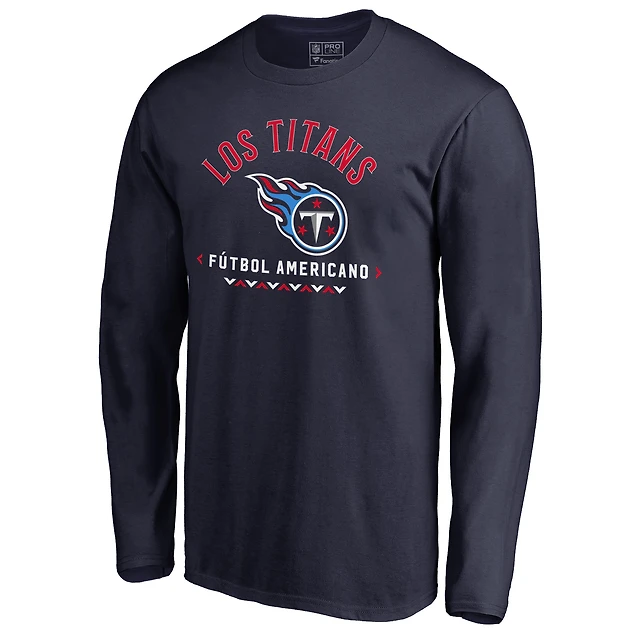 Men's Navy Tennessee Titans Futbol Americano Long Sleeve T-Shirt