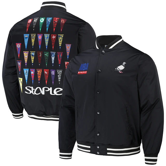 Men's NBA x Staple Black All Teams Pennant Woven Full-Snap Jacket