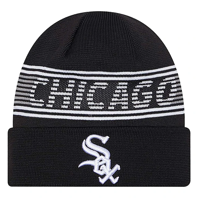 Men's Fanatics Black Chicago White Sox Fundamental Team Stripe Cuffed Knit Hat
