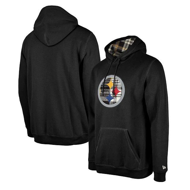 Men's New Era Black Pittsburgh Steelers 3rd Down Plaid Pullover Hoodie