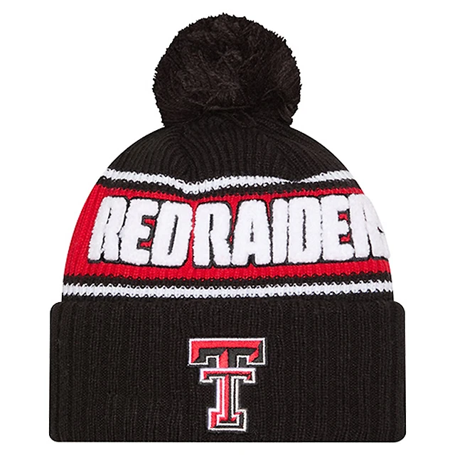 Men's New Era Black Texas Tech Red Raiders Bold Cuffed Knit Hat with Pom