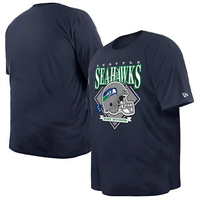 Men's New Era College Navy Seattle Seahawks Big & Tall Helmet Historic Mark T-Shirt