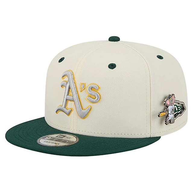Men's New Era Cream Athletics Mascot Pin 9FIFTY Snapback Hat
