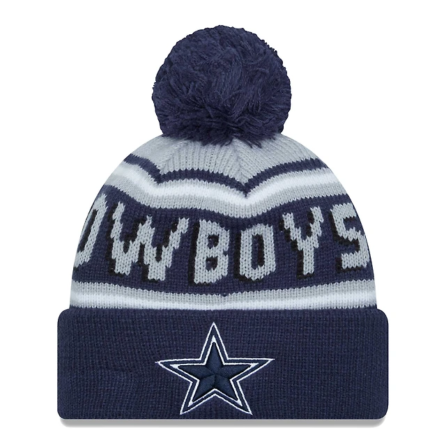 Youth New Era Navy Dallas Cowboys 2024/25 Sideline Cuffed Knit Hat with Pom