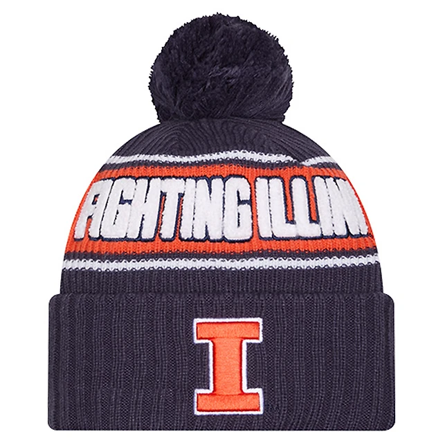 Men's New Era Navy Illinois Fighting Illini Bold Cuffed Knit Hat with Pom