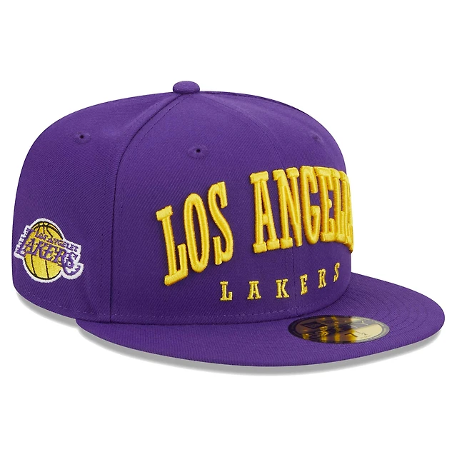 Men's New Era Purple Los Angeles Lakers Big Arch Text 59FIFTY Fitted Hat