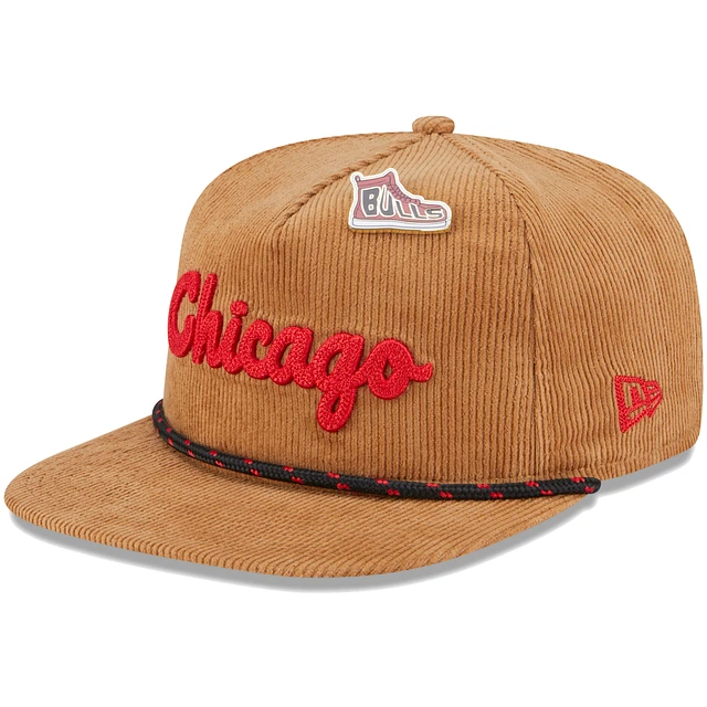 Men's New Era Tan Chicago Bulls Victory Grove Corduroy Sneaker Pin Golfer Adjustable Hat