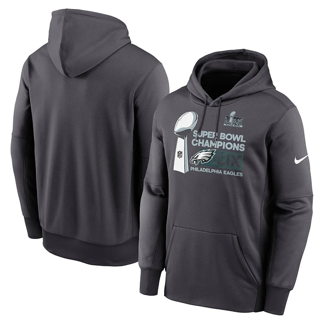 Men's Nike Anthracite Philadelphia Eagles Super Bowl LIX Champions Locker Room Trophy Collection Therma Fleece Pullover Hoodie