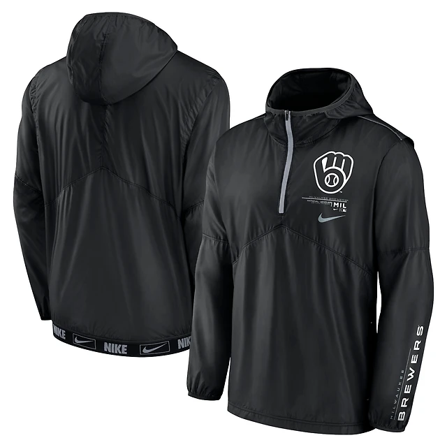 Men's Nike Black Milwaukee Brewers Authentic Night Game Performance Half-Zip Windbreaker