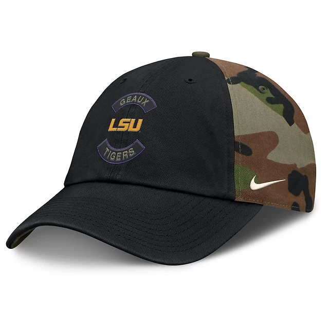 Men's Nike Black/Camo LSU Tigers 2025 Military Appreciation Club Adjustable Hat