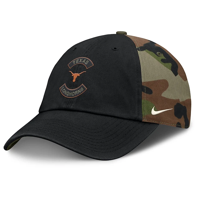 Men's Nike Black/Camo Texas Longhorns 2025 Military Appreciation Club Adjustable Hat