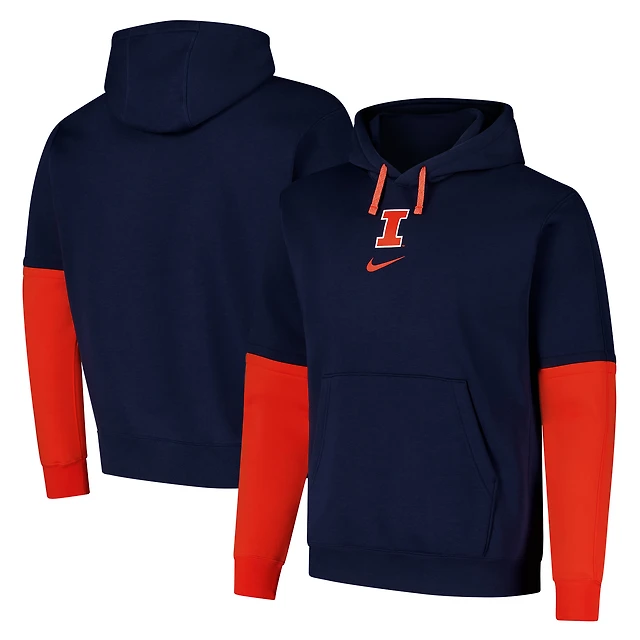 Men's Nike Navy Illinois Fighting Illini 2024 Sideline Club Fleece Pullover Hoodie