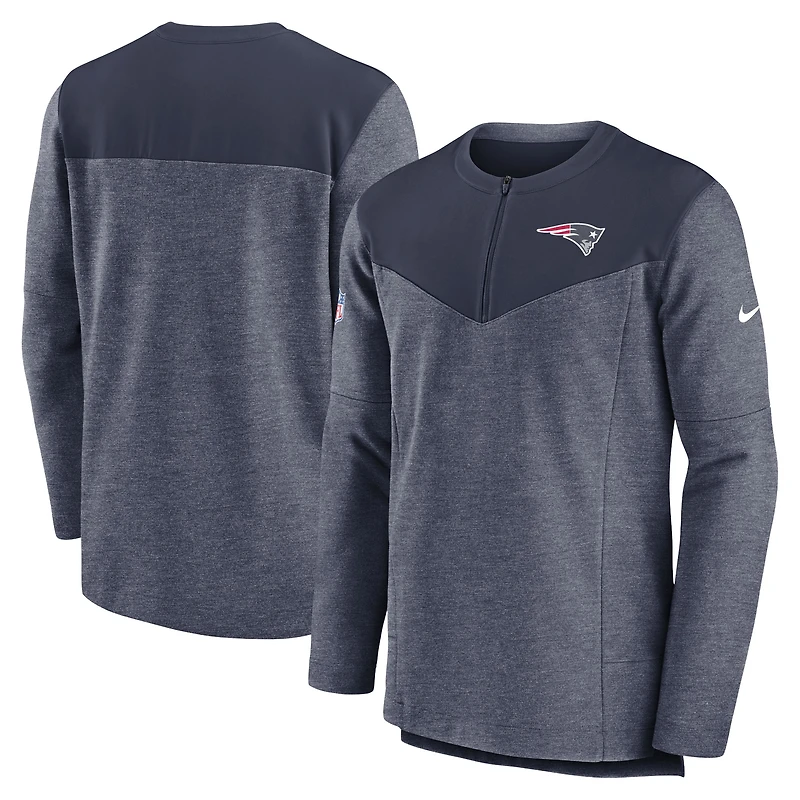 Represent your New England Patriots with pride in this Nike Sideline Lockup Performance Quarter-Zip Top. This lightweight pullover features embroidered New England Patriots graphics and a droptail hem with side splits for a stylish and comfortable fit. Whether you're cheering on the Patriots from the stands or watching from home, this pullover will keep you comfortable and stylish all season long.