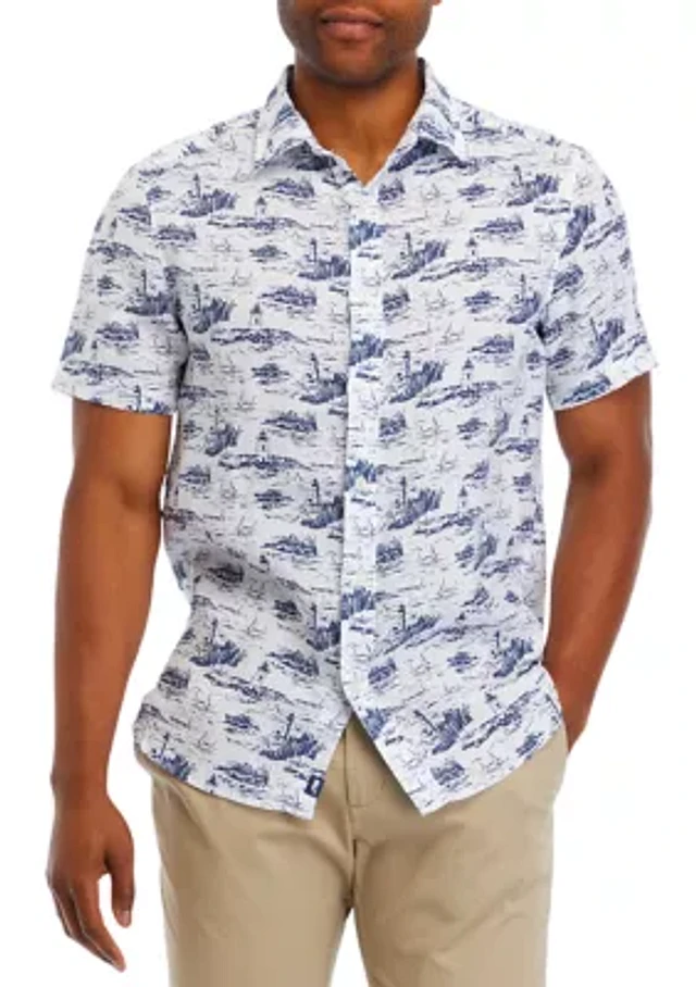 Men's Ocean View Toile Linen Short Sleeve Shirt