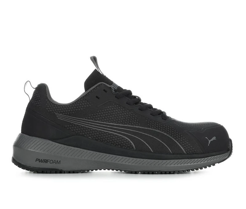 Men's Puma Safety POWER FOAM SLIDE Work Shoes Built for high-performance workdays, this athletic-inspired work shoe delivers advanced protection with all-day comfort. The synthetic upper with abrasion-resistant textile panels provides breathable durability for demanding environments. A lace-up closure offers a secure, supportive fit, reinforced by a composite safety toe for dependable protection without metal. Designed with electrical hazard protection and a slip-resistant outsole, this style supports confident movement across tough jobsite conditions.