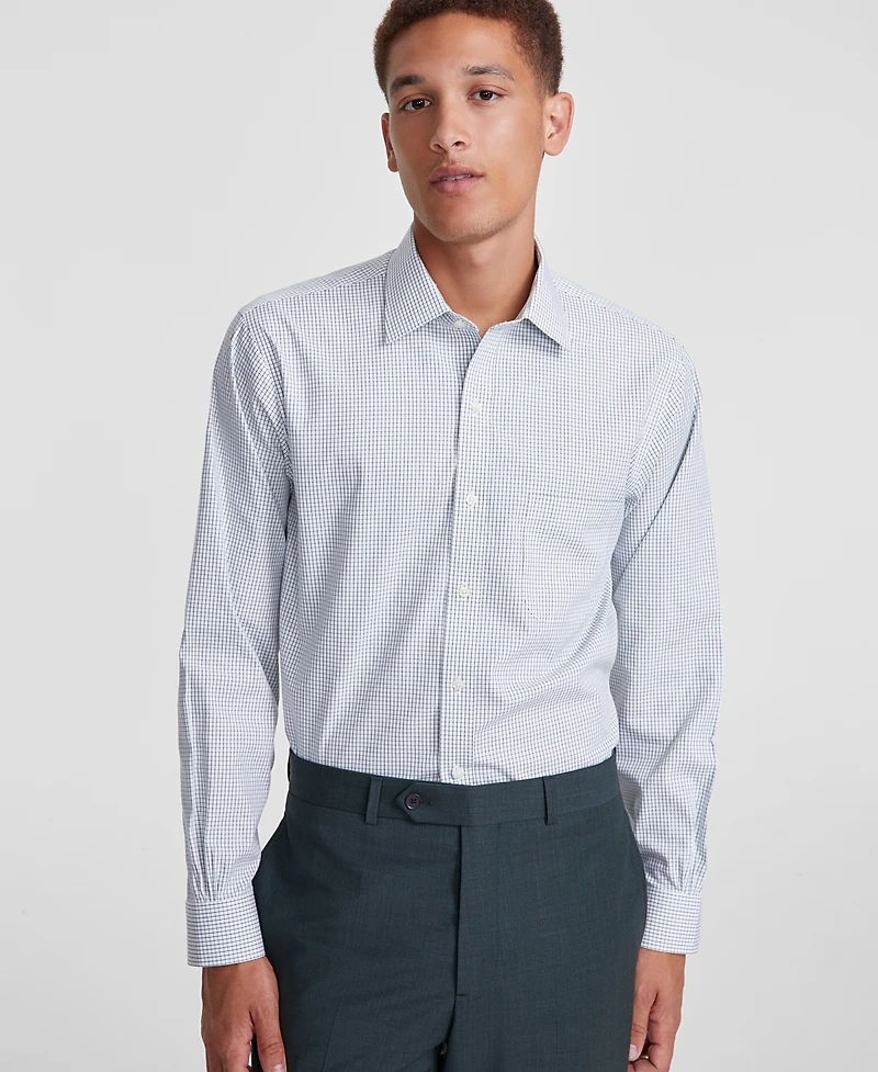 Men's Regular Fit Non-Iron Spread Collar Check Pinpoint Dress Shirt