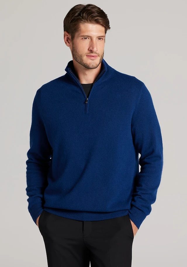 Men's Reserve Collection Tailored Fit 1/4 Zip Cashmere Sweater at Jos. A. Bank, Dark Blue