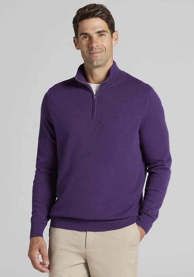 Men's Reserve Collection Tailored Fit 1/4 Zip Cashmere Sweater at Jos. A. Bank, Purple