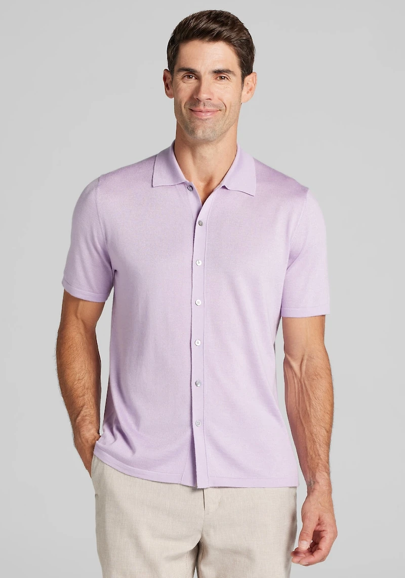 Men's Reserve Collection Tailored Fit Silk-Cashmere Short Sleeve Cardigan Sweater at Jos. A. Bank, Light Purple