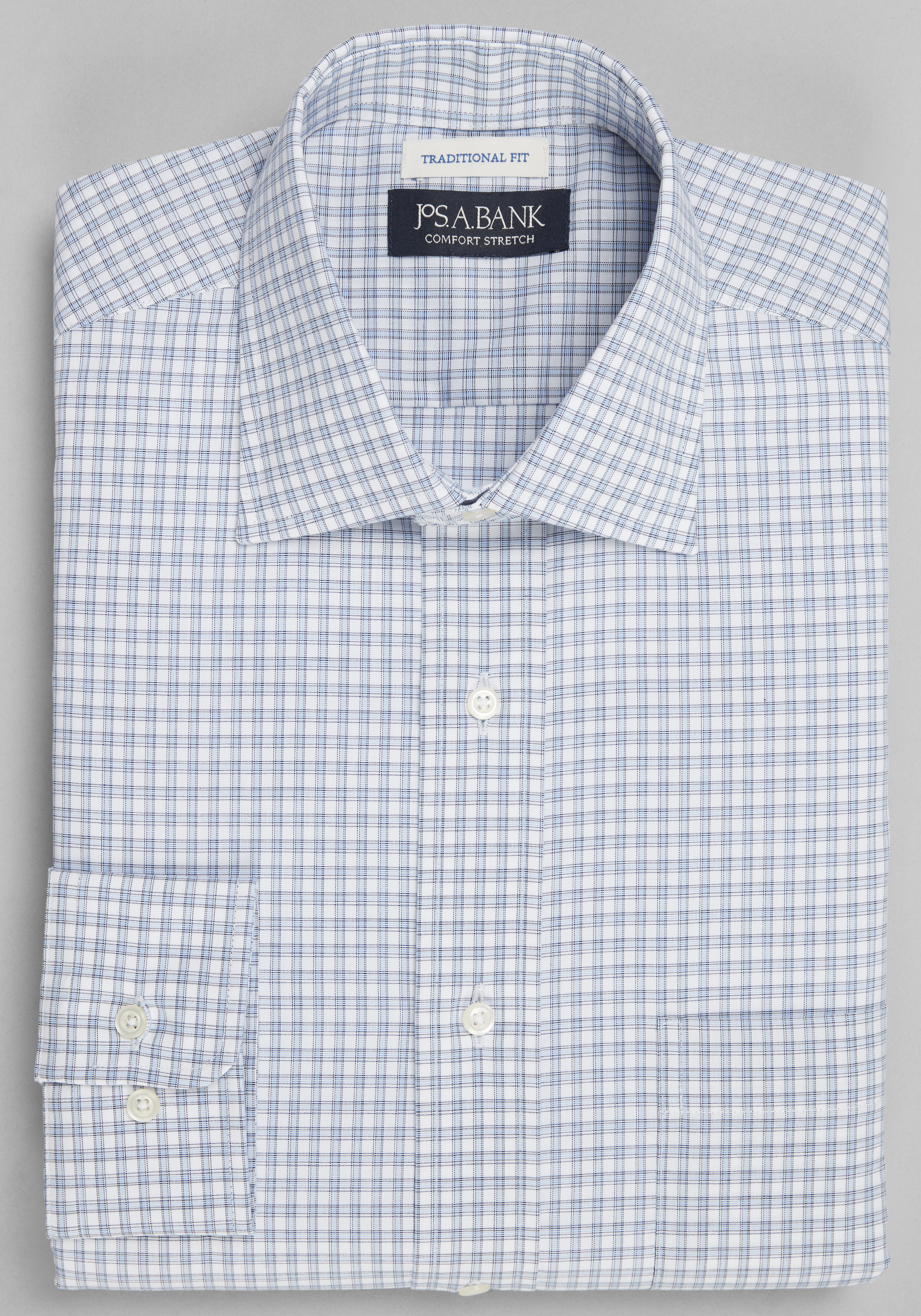 Jos. A. Bank Comfort Stretch Traditional Fit Spread Collar Grid Dress Shirt