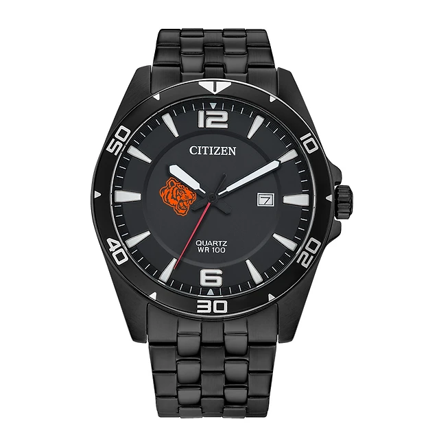 Men's Clemson Tigers Citizen Quartz Black-Tone Stainless Steel Watch