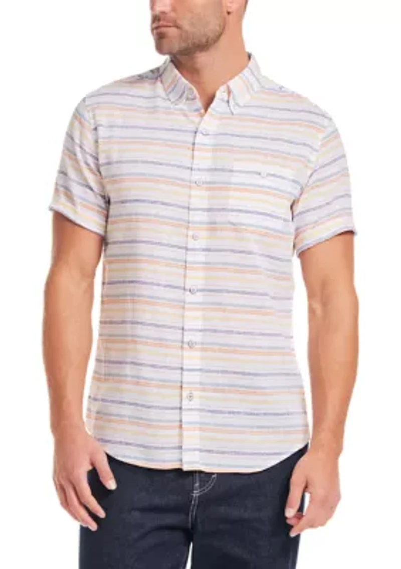 Experience effortless style and comfort with this breathable Weatherproof Vintage shirt, perfect for warm weather. Crafted from a premium linen and cotton blend, it features a timeless stripe pattern. Button-down collar Short sleeves Stripe pattern Imported Material & Care Linen, cotton Machine washable