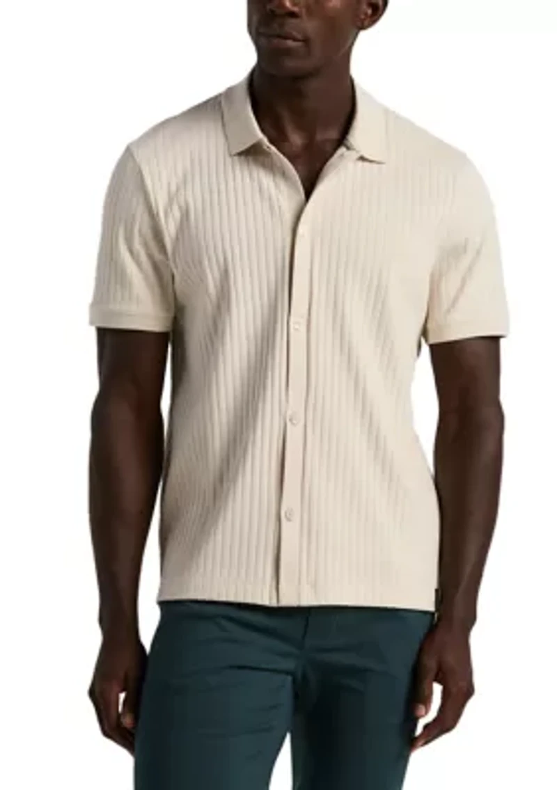 Men's Short Sleeve Vertical Ribbed Polo Shirt