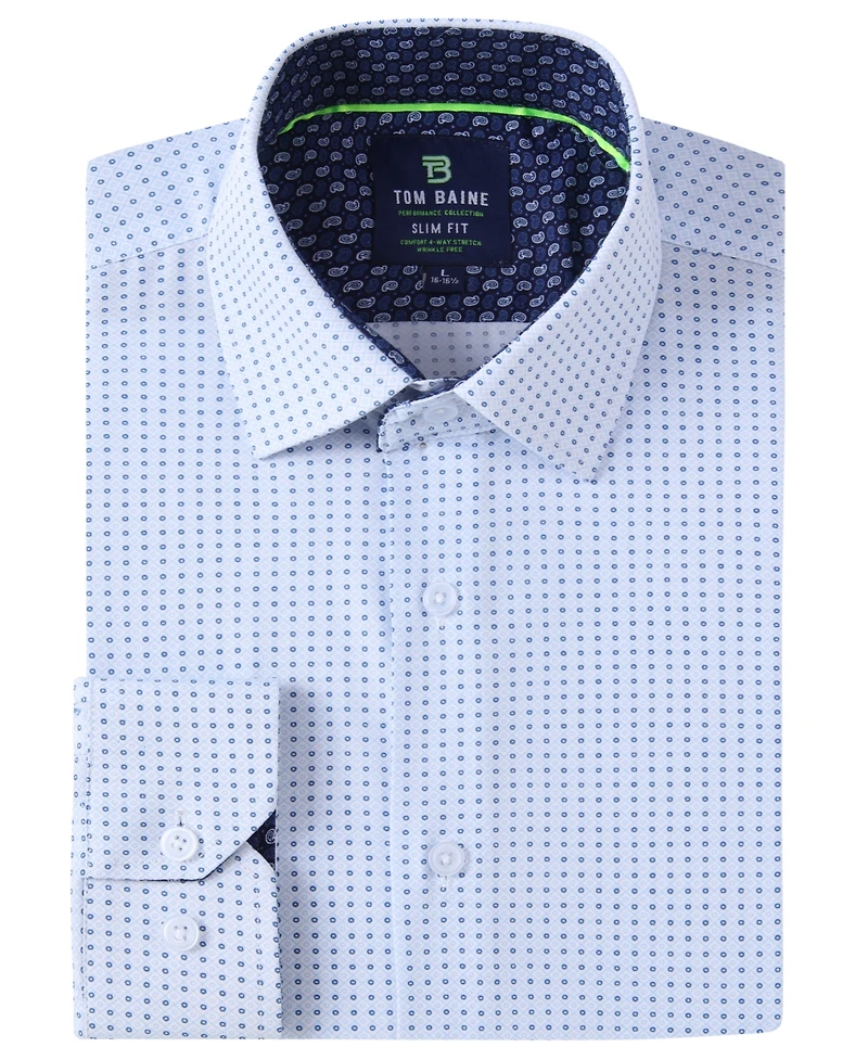 Men's Slim Fit Performance Long Sleeve Geometric Dress Shirt