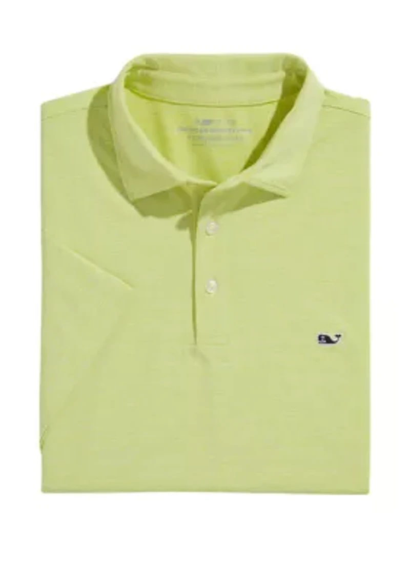 Vineyard Vines' polo shirt is crafted from lightweight performance fabric. Designed for a classic, relaxed fit, this shirt has built-in stretch for comfort and movement, UPF 30+ protection for long days in the sun, and moisture-wicking properties. Wrinkle resistant Built-in interior collar stays Whale logo embroidered on chest Three-button placket Button closure Spread collar Short sleeves Regular fit Imported Material & Care Polyester, spandex Machine washable