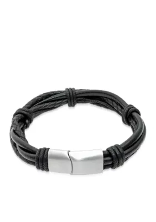 Inox® Jewelry Mens Stainless Steel Black & Brown Woven Leather Bracelet